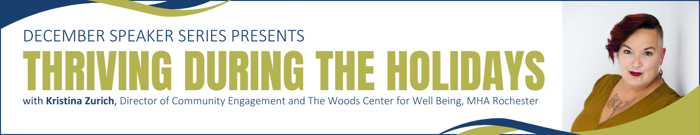 Join us this December for our MHA Speaker Series with Kristina Zurich, Director of Community Engagement and The Woods Center for Well-Being at the Mental Health Association of Rochester.